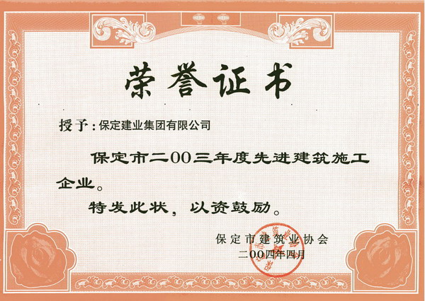 03年度省先進建筑施工企業(yè)證書