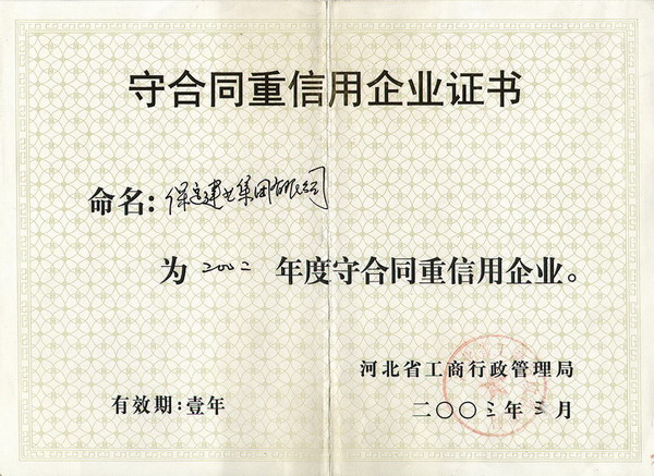 02年度省重合同守信用正本