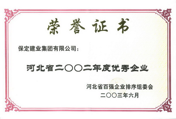 02年度省百強優(yōu)秀企業(yè)證書