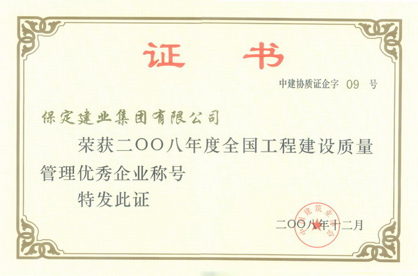08全國建設(shè)質(zhì)量管理優(yōu)秀企業(yè)